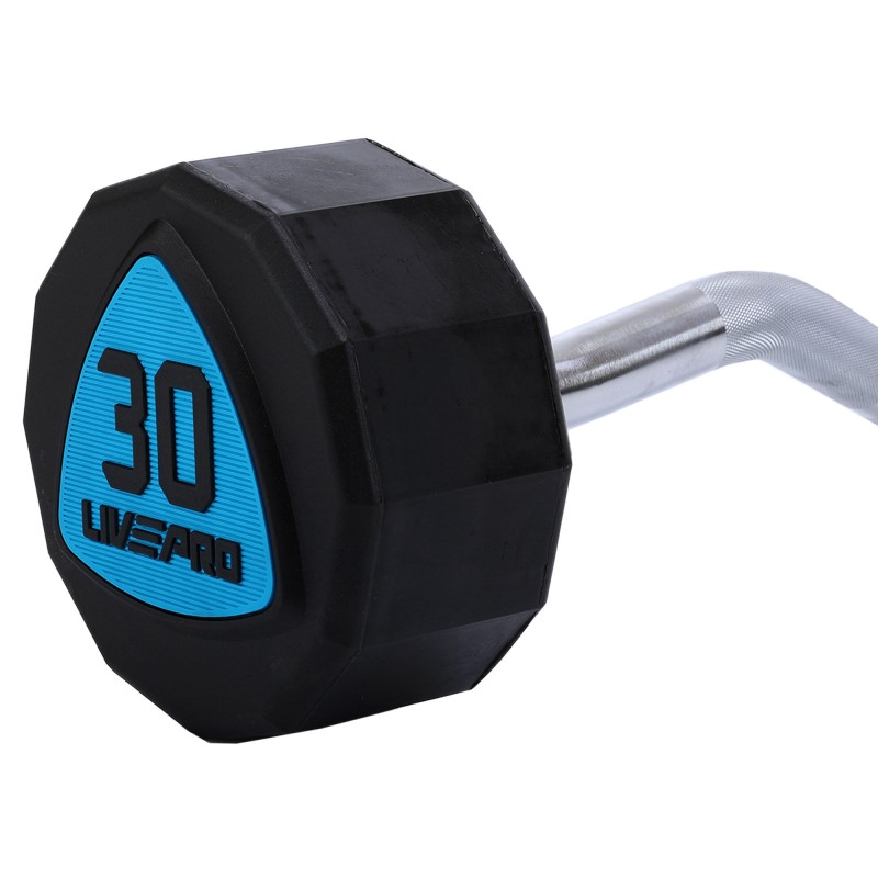 Штанга фіксована вигнута поліуретанова 12-стороння LiveUp довжина-89,2см, 30кг, чорний-синій, код: LP8013-30-S52