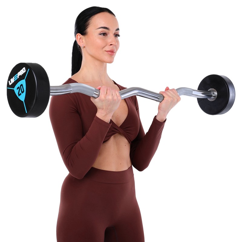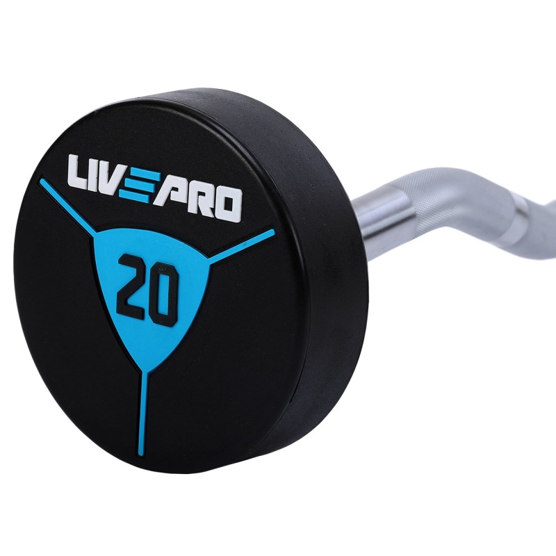 Штанга фіксована вигнута поліуретанова LiveUp довжина-89,2см, 20кг, чорний-синій, код: LP8011-20-S52