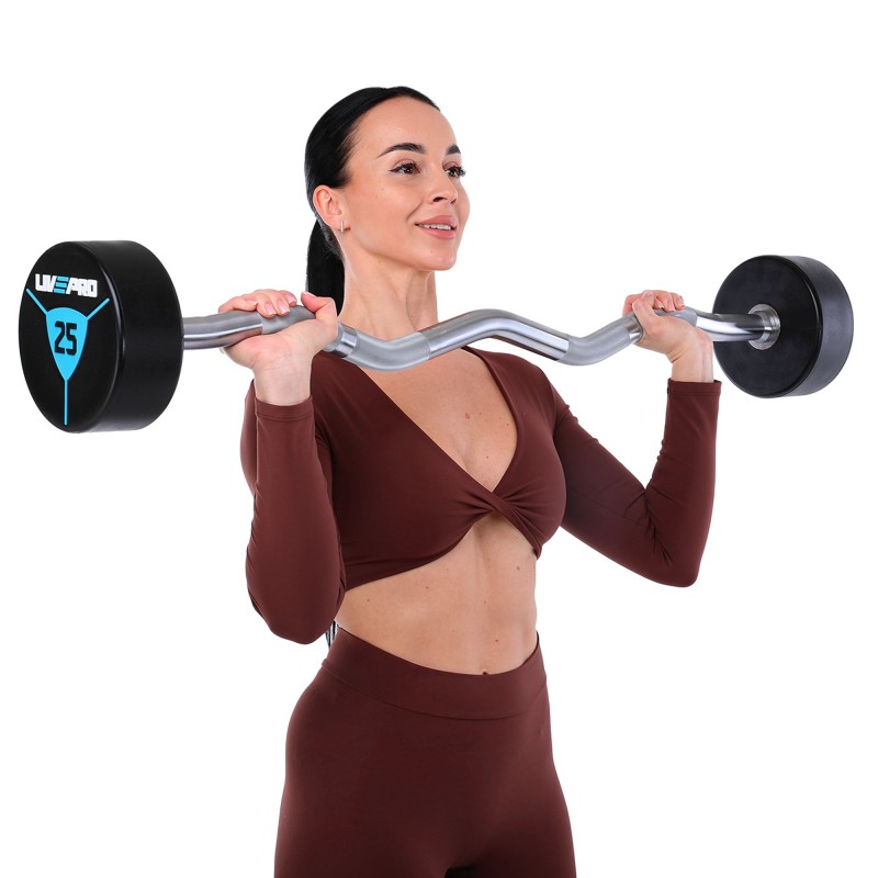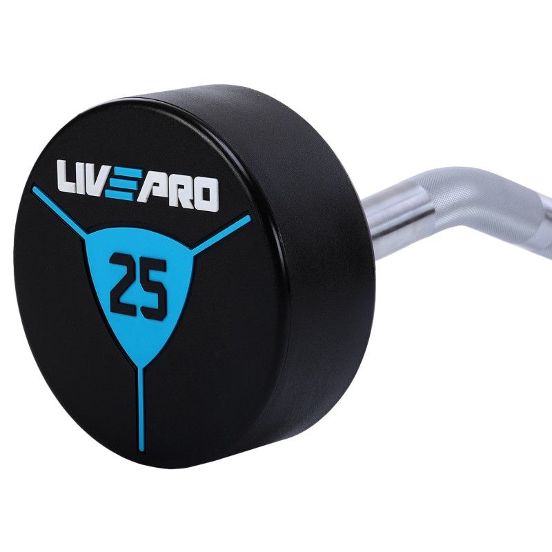 Штанга фіксована вигнута поліуретанова LiveUp довжина-89,2см, 25кг, чорний-синій, код: LP8011-25-S52