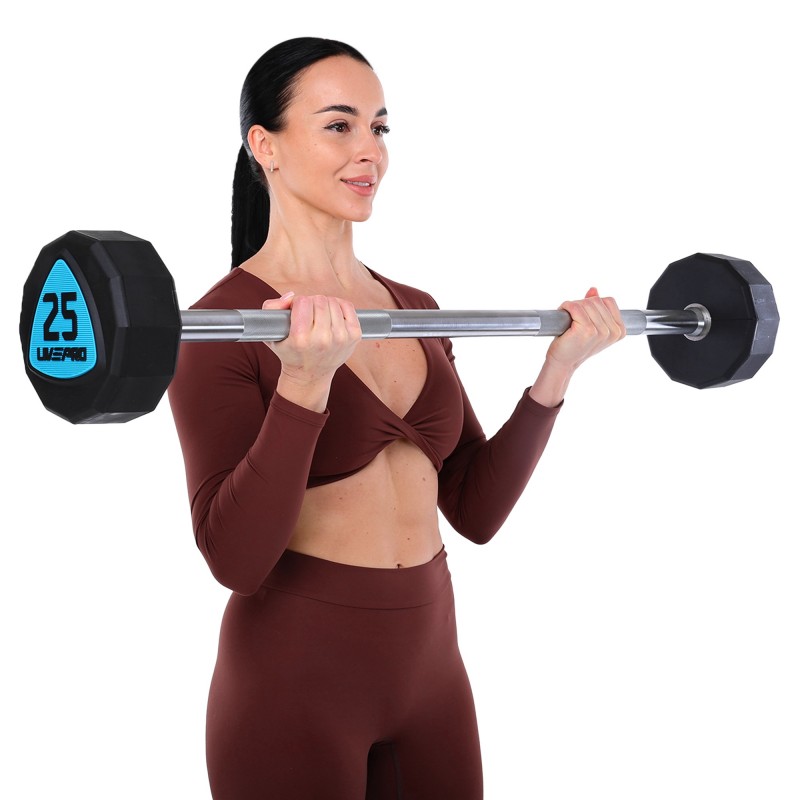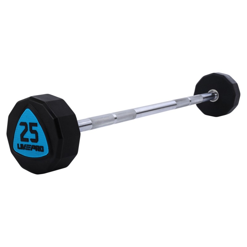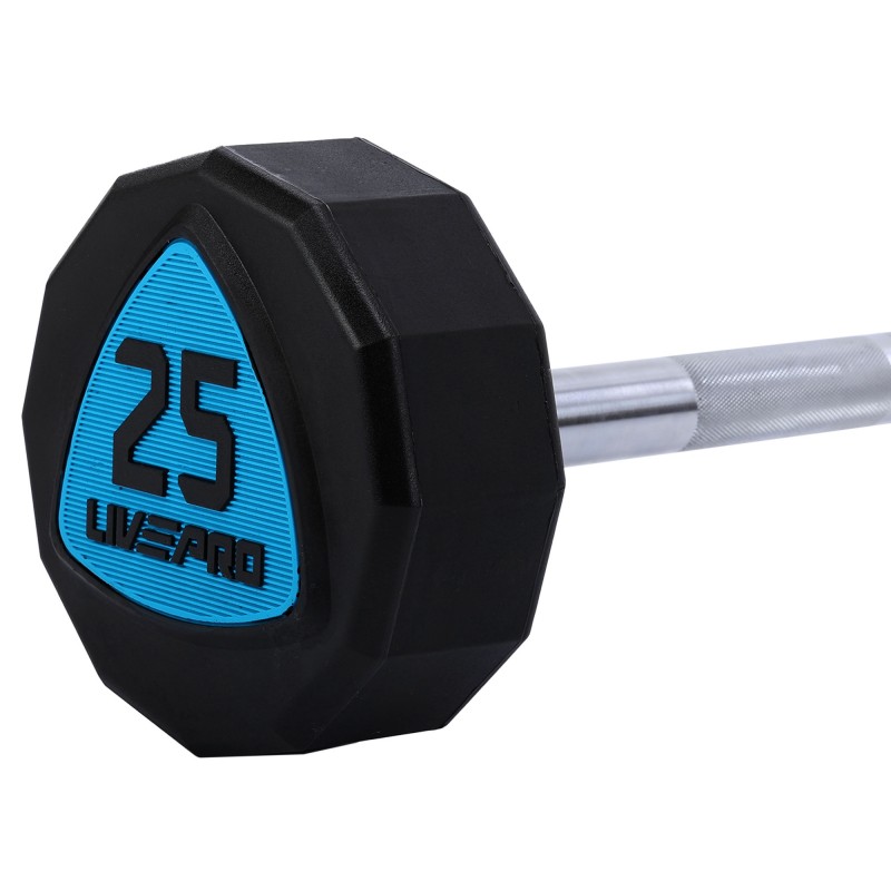 Штанга фіксована пряма поліуретанова 12-стороння LiveUp довжина-89,2см, 25кг, чорний-синій, код: LP8012-25-S52