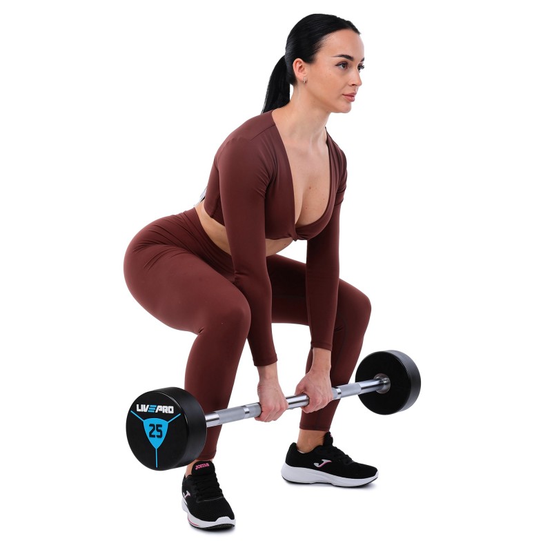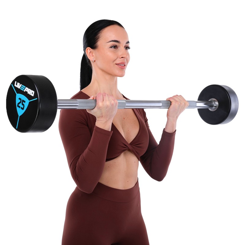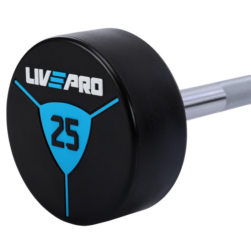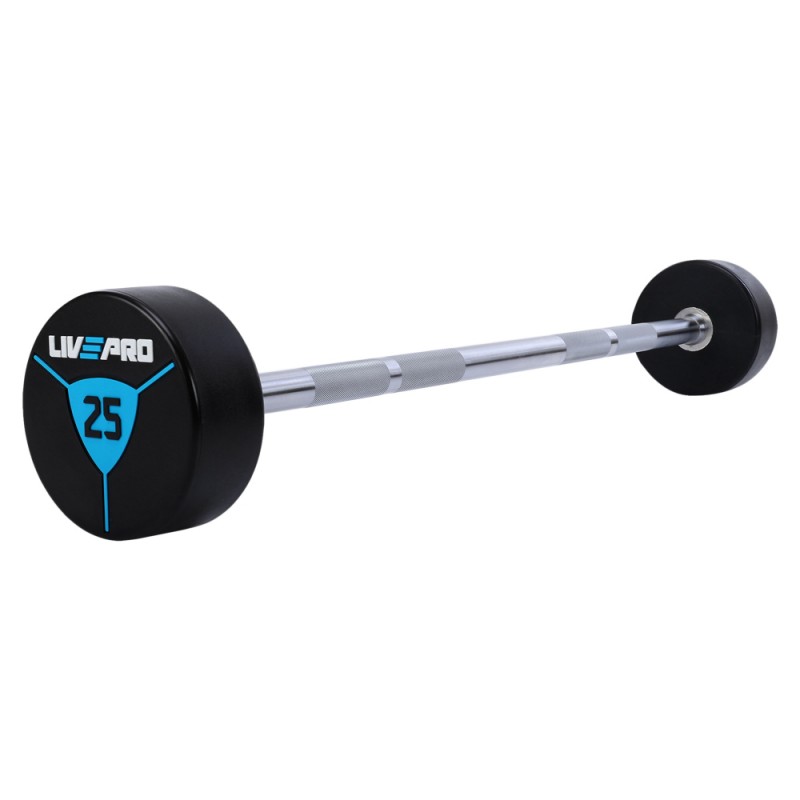 Штанга фіксована пряма поліуретанова LiveUp довжина-89,2см, 25кг, чорний-синій, код: LP8010-25-S52