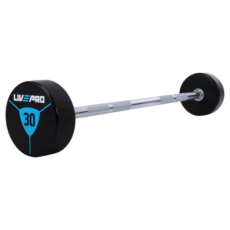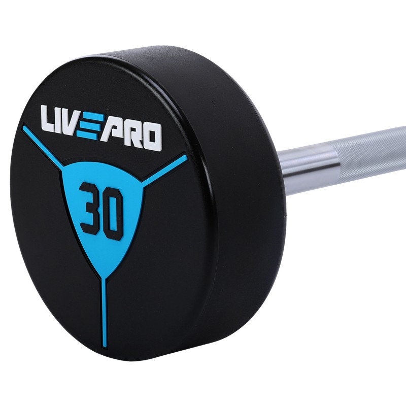 Штанга фіксована пряма поліуретанова LiveUp довжина-89,2см, 30кг, чорний-синій, код: LP8010-30-S52