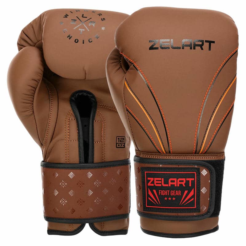 Боксерські рукавиці шкіряні Zelart 10 унцій, коричневий-чорний, код: BO-3843_10BR