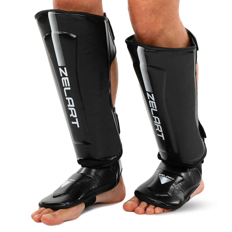 Захист гомілки та стопи для єдиноборств Zelart XL, чорний-синій, код: BO-3981_XLBK