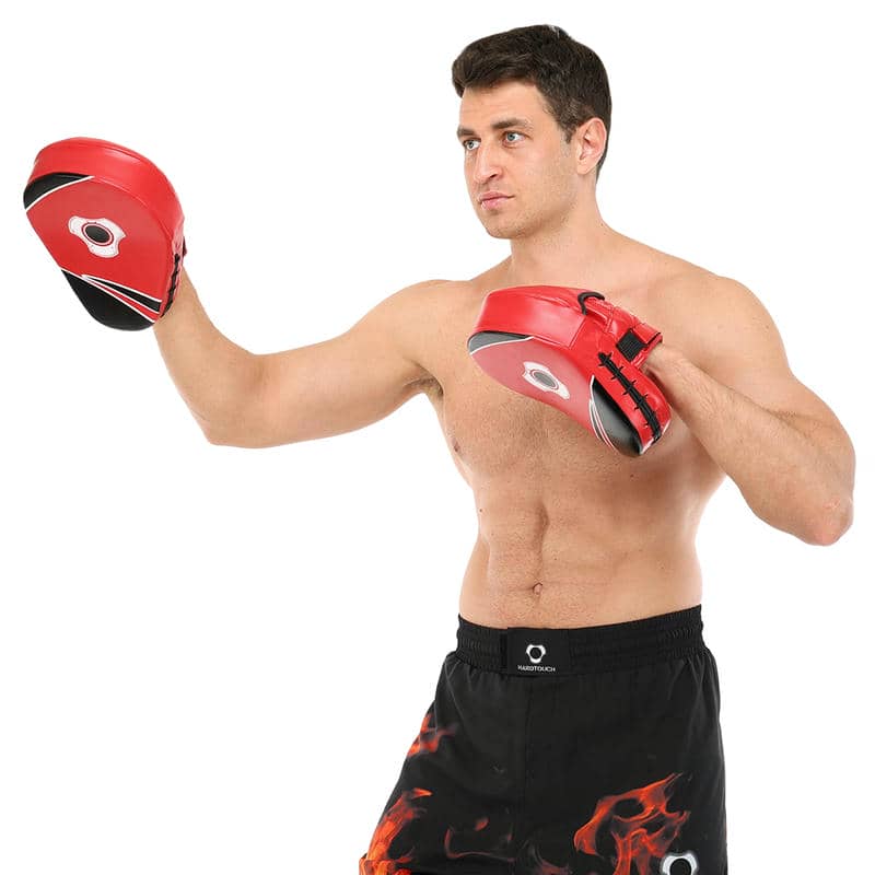 Лапа вигнута для боксу та єдиноборств Hard Touch 190x50x250 мм, 2шт, червоний-чорний, код: BO-4251_R