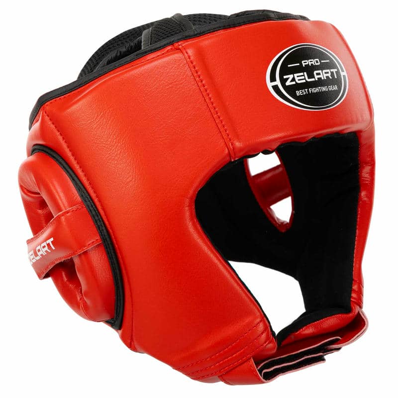 Шолом боксерський відкритий шкіряний Zelart M, червоний, код: BO-3904_MR