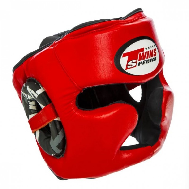 Шолом боксерський з повним захистом шкіряний Twins S, червоний, код: TW-015_SR