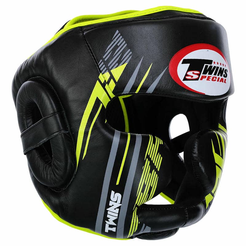 Шолом боксерський з повним захистом шкіряний Twins L, чорний-салатовий, код: TBS123_LBKLG
