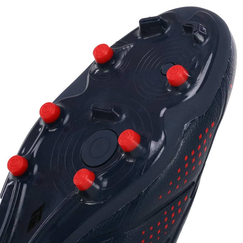 Матеріал верху виконаний з міцного і в той же час гнучкого поліуретану (PU), який стійкий до зношування та відмінно зберігає форму. Він адаптується до стопи, не сковує руху та витримує навіть суворі погодні умови. Підошва з TPU з інтегрованими шипами розроблена спеціально для ігор на натуральному газоні, щоб забезпечити гравцеві впевнену поведінку на полі та мінімізувати ризик підскальзування. Розмірна сітка орієнтована на дорослих гравців, надаючи широкий вибір розмірів для точної посадки.