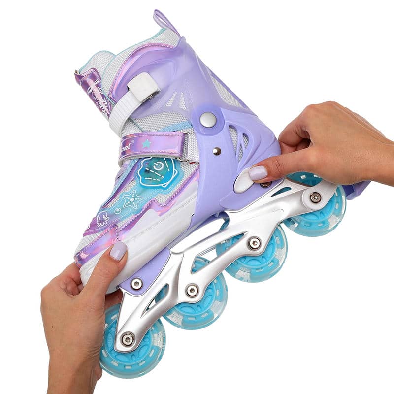 Роликові ковзани розсувні дитячі із захистом й шоломом у комплекті Banwei M (35-38), фіолетовий-блакитний, код: BW-902-9_MV