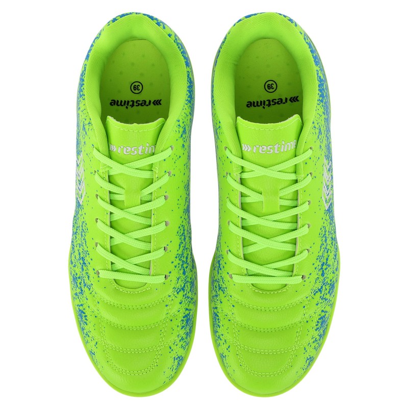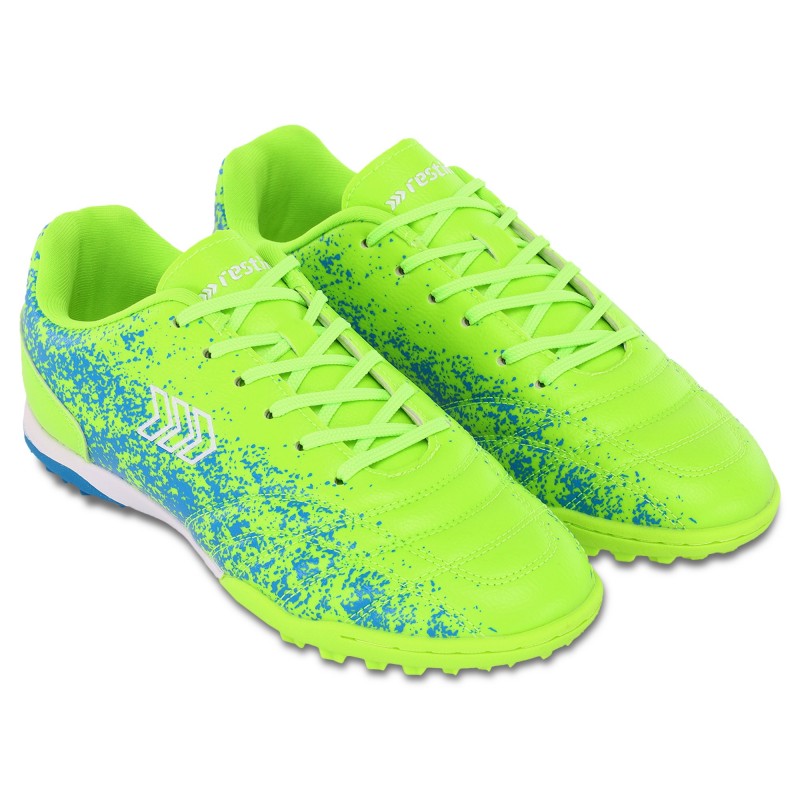Футбольні сороконіжки RESTIME мають яскравий дизайн, який не залишить байдужим нікого. Спеціальне футбольне взуття призначене для гри на ґрунтовому полі або ковроліні. Також допускається використання такого взуття під час занять футболом на змішаних покриттях. Сороконіжки являють собою взуття з шипованою поверхнею підошви. Однак основною відмінністю від класичних бутс є те, що шипи виготовлені з гуми. Плоска шипована гумова підошва забезпечує хорошу амортизацію під час бігу, а також сприяє максимальному зчепленню з покриттям. Це дає змогу гравцеві робити розвороти на місці та в русі, почуватися максимально впевнено на полі. Верх взуття виконано з якісного поліуретану, що забезпечує захист стопи від випадкових ударів і стійкість до зношування. Взуття комфортне та міцне.