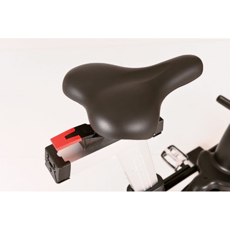 - Інформативна консоль: LCD-дисплей відображає час, дистанцію, калорії, швидкість, пульс, оберти за хвилину, ЧСС та потужність; в комплекті є тримач для смартфона або планшета.