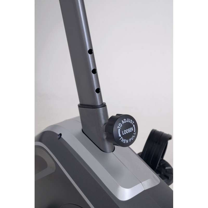 Ефективна гальмівна система: Магнітне гальмування з ручним регулюванням опору забезпечує плавну зміну навантаження. Оптимальна вага маховика: Маховик вагою 7 кг створює стабільне тренувальне навантаження, сприяючи рівномірному руху педалей. Зручна консоль: LCD-дисплей із вбудованим тримачем для смартфона або планшета відображає основні параметри тренування, такі як час, дистанція, калорії, швидкість, пульс, оберти за хвилину та одометр. Індивідуальне налаштування: Регулювання сідла за вертикаллю та горизонталлю забезпечує оптимальне положення для кожного користувача. Можливість коригування кута нахилу керма для забезпечення максимальної зручності під час тренування. Система регулювання опору: Ручне регулювання опору з 8 рівнями дозволяє точно підібрати інтенсивність тренування. Контроль пульсу: Вбудований датчик вимірювання пульсу через ручний сенсор дозволяє слідкувати за серцевим ритмом під час занять.