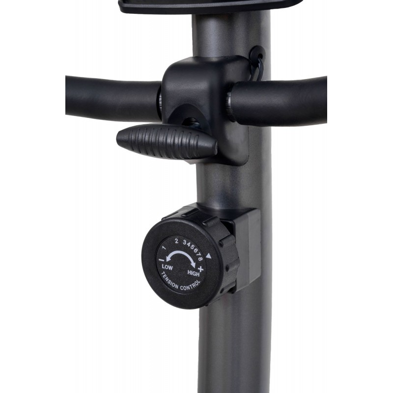 Гальмівна система: Магнітна система з ручним регулюванням опору. Маховик: Вага 7 кг. Максимальна вага користувача: До 110 кг. Консоль: LCD-дисплей із тримачем для смартфона/планшета. Функції: Відображення дистанції, часу, калорій, пульсу, швидкості, оберти за хвилину та одометра. Положення сідла: Вертикальне та горизонтальне регулювання. Кермо: Регульований кут нахилу. Регулювання опору: Ручне з 8-рівневим контролем напруги. Контроль пульсу: Вимірювання пульсу за допомогою ручного сенсора. Педальний вал: Складається з 1 частини. Вага тренажера: 23 кг. Розміри у зібраному стані: 85,5 x 50,1 x 137,5 см. Загальна вага: 25 кг. Розміри упаковки: 77 x 28 x 59 см.