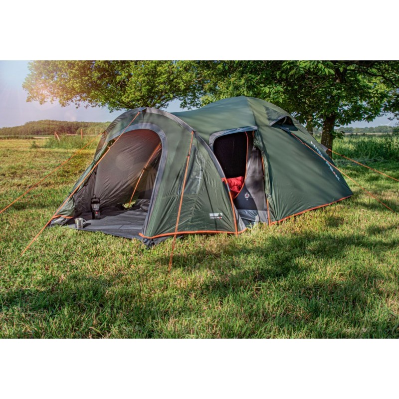 High Peak Kira 4.1 Deep Forest (10374) - чотиримісний купольний намет із просторим тунельним тамбуром і додатковим бічним входом. Модель має алюмінізоване покриття зовнішнього тенту, яке зміцнює тканину та знижує підвищення температури всередині в сонячну погоду. Намет оснащений екологічно чистим водовідштовхувальним DWR-просоченням без PFC елементів. Високоефективна система вентиляції Advanced Low Vent System забезпечує оптимальну циркуляцію повітря навіть у дощові дні. Достатня відстань між внутрішнім наметом і зовнішнім тентом суттєво зменшує утворення конденсату. Затемнена спальня не пропускає яскраве світло, дозволяючи виспатися всім, хто пізно прокидається. Система вентиляції внутрішнього намету Vario Vent Control забезпечує регульований потік свіжого повітря, щоб ви могли виспатися ще краще. Всі шви дна і тенту проклеєні спеціальною стрічкою, гарантуючи захист від проникнення вологи в дощову погоду. В наметі зможуть без проблем розміститися три-чотири людини з усім спорядженням. Намет чотиримісний High Peak Kira 4.1 Deep Forest (10374) стане ідеальним вибором для відпочинку на вихідних.