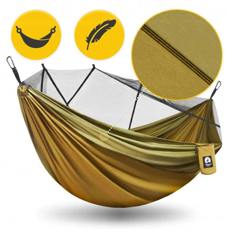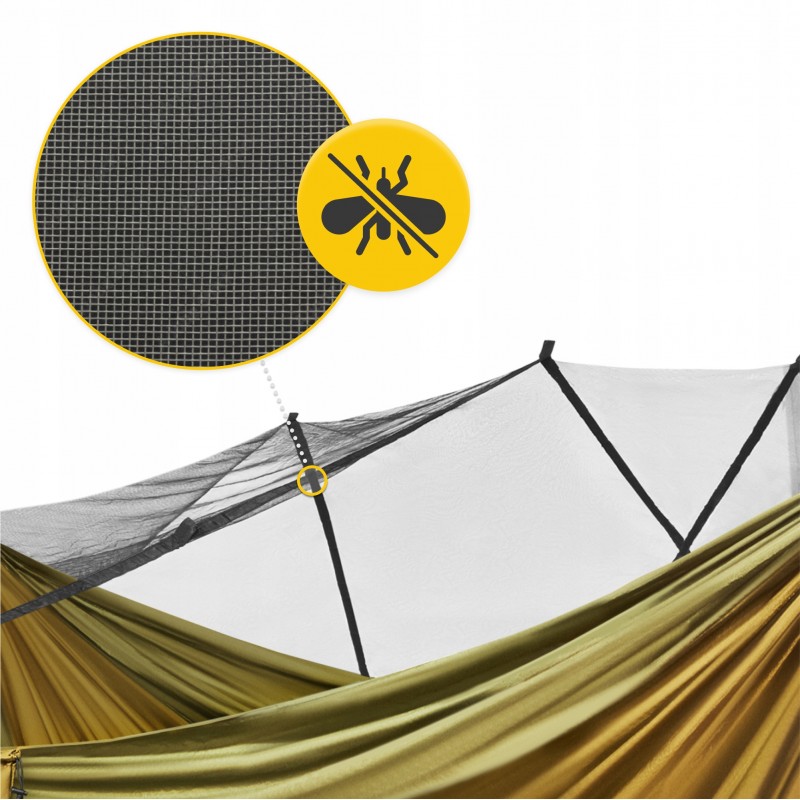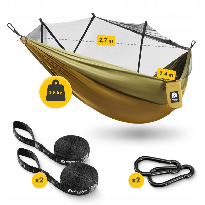 Гамак туристичний, одномісний від польського бренду Mountain Goat - ваш ідеальний супутник у подорожах, походах та пригодах на лоні природи! Це легке та міцне пристосування із захистом від комах, створене для тих, хто цінує свободу, комфорт і незабутні враження від активного відпочинку. Завдяки вбудованій москітній сітці ви зможете не турбуватися про укуси комах. Виріб виконаний з парашутного нейлону 210Т та витримує навантаження до 200 кг, забезпечуючи надійність навіть у найскладніших умовах. Завдяки компактним розмірам у складеному вигляді (18 x 13 см) та вазі лише 0.8 кг, він легко поміститься у рюкзаку, щоб бути завжди під рукою - чи то в горах, походах до лісу, поїздках на фестиваль під відкритим небом та інших місцях. Кольорова гама у військово-зеленому відтінку не тільки підкреслить ваш стиль, але й допоможе маскуватися під час бушкрафту чи спостереження за природою.