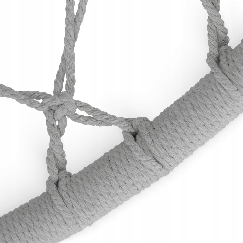 Крісло-гойдалка 4Fizjo має діаметр 80 см та загальну висоту 125 см, що забезпечує достатній простір для зручного сидіння. Міцні бавовняні мотузки витримують навантаження до 125 кг, а щільне плетіння захищає від деформації навіть при інтенсивному використанні. Жорсткий каркас додає виробу довговічності, а м'яке плетене сидіння з висотою спинки 37 см обіймає тіло, занурюючи в стан абсолютної релаксації. Крісло легко розвісити на дереві, спеціальній стійці або балковій конструкції - воно ідеально впишеться як у міський балкон, так і в заміський сад.