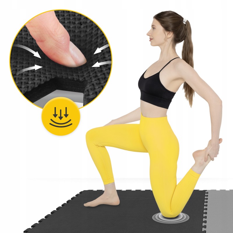 Мат-пазл від польського бренду 4Fizjo - це ідеальне рішення для захисту підлоги та створення комфортної зони для тренувань! Виготовлений з міцної піни EVA, він поєднує функціональність, довговічність та стиль. Стриманий дизайн додасть естетики вашому домашньому спортзалу, фітнес-клубу або тренажерному залу, а модульна система з'єднання "ластівчин хвіст" дозволяє швидко складати мати будь-якого розміру. Відмінно підходить для захисту поверхні від подряпин, вм'ятин та вібрацій під час роботи зі силовими тренажерами або кардіообладнанням. Крім того, мат зменшує шум і забезпечує стабільність, роблячи ваші тренування безпечними та ефективними!