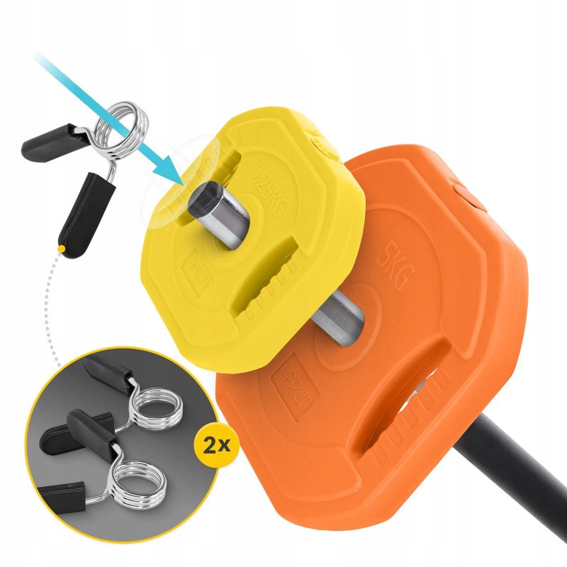 Штанга для боді-пампу від 4Fizjo виконана з комбінації високоякісних матеріалів. Диски мають композитну структуру - всередині мінеральний наповнювач, який покритий кількома шарами міцного пластику. Це дає одразу кілька переваг: дозволяє вберегти підлогове покриття від механічних пошкоджень, зменшує рівень шуму при тренуваннях та робить виріб естетично привабливим. Гриф складається з трьох частин, тому займає мало місця при зберіганні та зручний для транспортування. Із додаткових переваг продукту: диски обладнані ергономічними ручками, що дають змогу швидко змінювати навантаження, а також використовувати обтяження окремо без штанги; затискачі-метелики дозволяють правильно розмістити пластини та надійно утримувати їх на місці під час тренування; зона хвату грифа по всій довжині має гумове покриття для комфортної роботи зі штангою навіть без рукавичок.