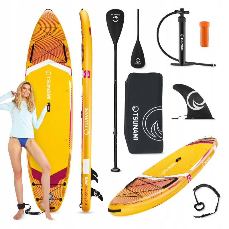 Надувна SUP дошка серії Pro від польського бренду Tsunami - ідеальний вибір для тих, хто мріє про пригоди на воді! Вона відмінно підходить як для новачків, так і для досвідчених ентузіастів. З сапбордом ви зможете досліджувати озера, річки або морські узбережжя, насолоджуючись свободою руху та тренуючи все тіло. Довжина 350 см забезпечує стабільність і легке маневрування, а міцний двошаровий матеріал робить її стійкою до пошкоджень та перепадів температур. У комплекті - все необхідне: регульоване весло, помпа, страхувальна линва, ремонтний набір та рюкзак для транспортування. Навіть якщо ви ніколи не стояли на SUP-дошці - Tsunami стане вашим надійним партнером у світі водного спорту!