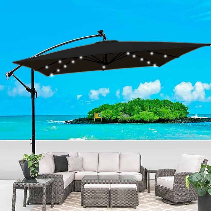 • Парасоля садова WCG з LED-підсвіткою + чохол 2500x2500 мм, чорний, код: W-7055LED-BL-IF
