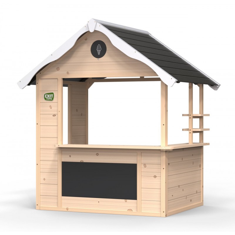 Подаруйте вашій дитині дерев'яний ігровий будиночок Exit Hika, який стане місцем захопливих ігор прямо у вашому саду. Унікальне колесо для рольових ігор на передній панелі дозволяє обрати одну з 8 ігрових тем: будиночок легко перетворюється з кафе-морозива на замок або з ветеринарної клініки на поліцейську дільницю.