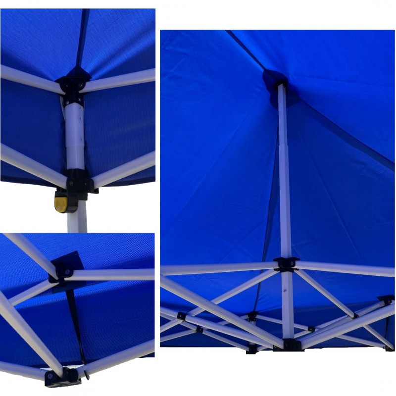 Павільйон виготовлений з прочного сталевого каркасу з антикорозійним покриттям, що гарантує довговічність. Водонепроникний тент- матеріал Oxford 420D з ПВХ-покриттям надійно захищає від вологи. Дана модель прослужить довго і витримає численні установки.