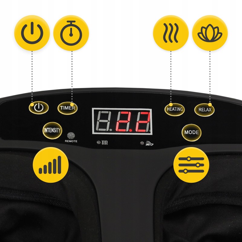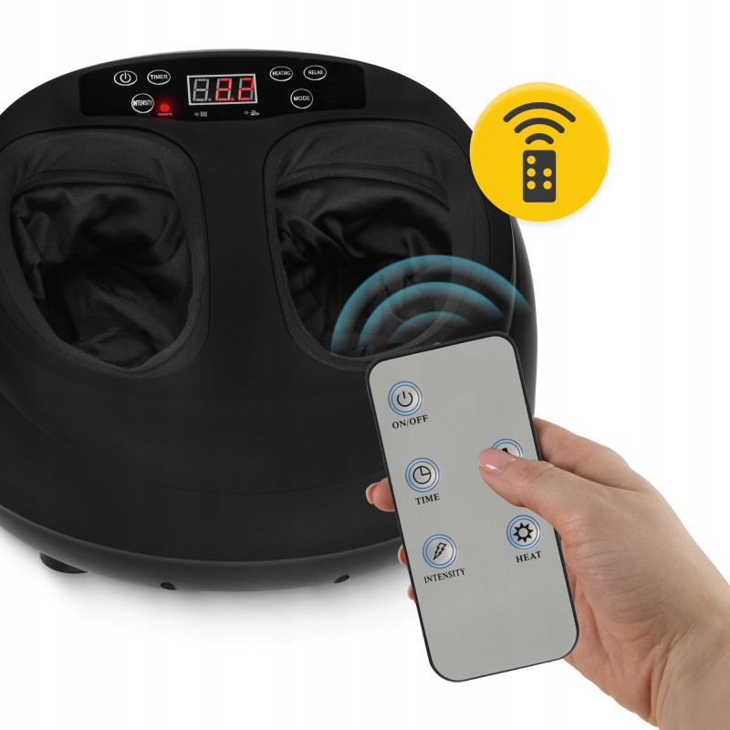 Масажер 4Fizjo Premium вражає інноваційним оснащенням та ергономічним дизайном. Його корпус з високоміцного пластику має оптимальні розміри (35 x 42 x 24 см) та вагу (3 кг), що забезпечує стабільність завдяки 4 антиковзним ніжкам. Пристрій працює від мережі 220-240 В (потужність 40 Вт) та комплектується довгим кабелем (150 см) для вільного переміщення. Інтуїтивний LED-дисплей із пультом ДК дозволяє легко керувати 4 режимами масажу (шиацу, акупунктура, компресія, комбінований), регулювати інтенсивність (5 рівнів), температуру підігріву та виставляти таймер від 5 до 30 хвилин. Ергономічні камери з 3D-головками ідеально повторюють анатомію стопи (сумісність до 46 розміру), а знімний тканинний чохол із підкладкою забезпечує відмінну гігієну та комфорт - його можна прати у машинці.