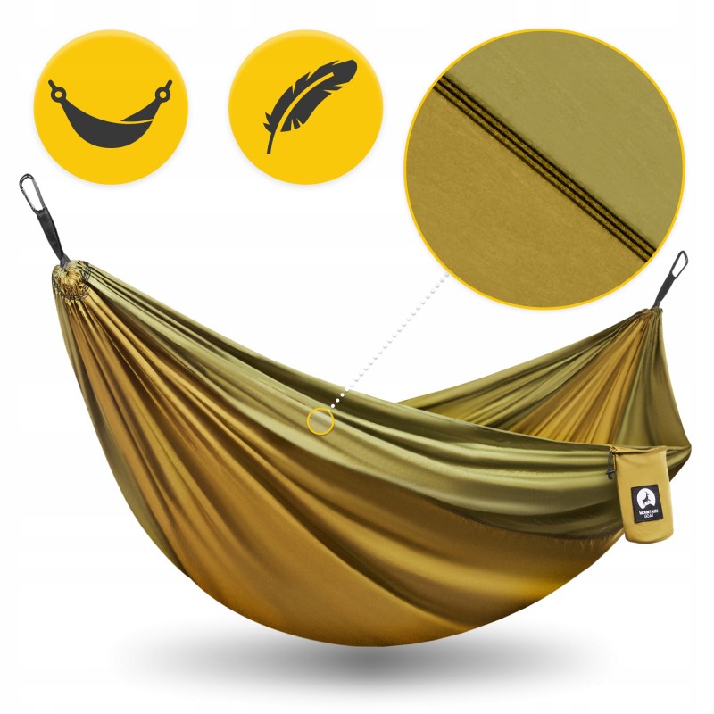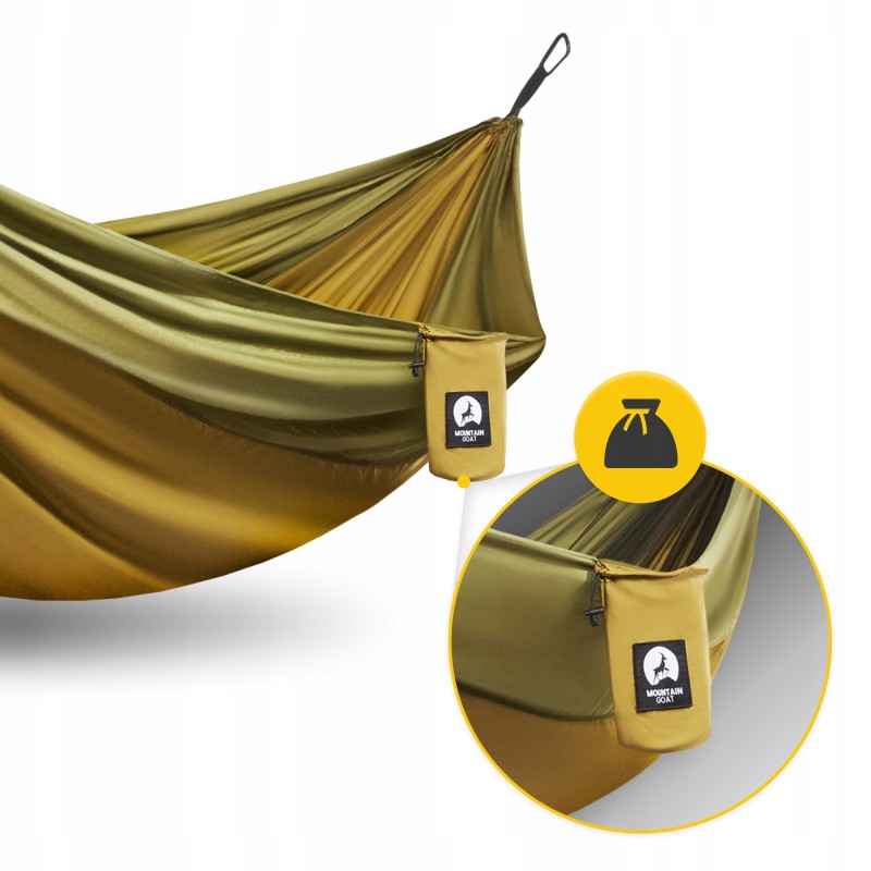 Гамак туристичний, двомісний від польського бренду Mountain Goat - ваш ідеальний супутник у подорожах, походах та пригодах на лоні природи! Це легке та міцне пристосування створене для тих, хто цінує свободу, комфорт і незабутні враження від активного відпочинку. Виріб виконаний з парашутного нейлону 210Т та витримує навантаження до 200 кг, забезпечуючи надійність навіть у найскладніших умовах. Завдяки компактним розмірам у складеному вигляді (29 x 15 см) та вазі лише 1.3 кг, він легко поміститься у рюкзаку, щоб бути завжди під рукою - чи то в горах, походах до лісу, поїздках на фестиваль під відкритим небом та інших місцях. Кольорова гама у військово-зеленому відтінку не тільки підкреслить ваш стиль, але й допоможе маскуватися під час бушкрафту чи спостереження за природою.