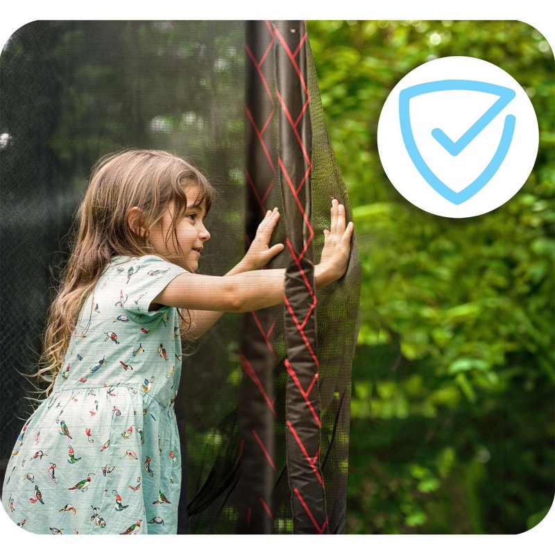 • 4 подвійні ніжки - унікально профільовані у формі літери «U», підвищують стійкість батута навіть на мʼякому ґрунті. Вони рівномірно розподіляють вагу та мінімізують ризик зсуву під час стрибків.