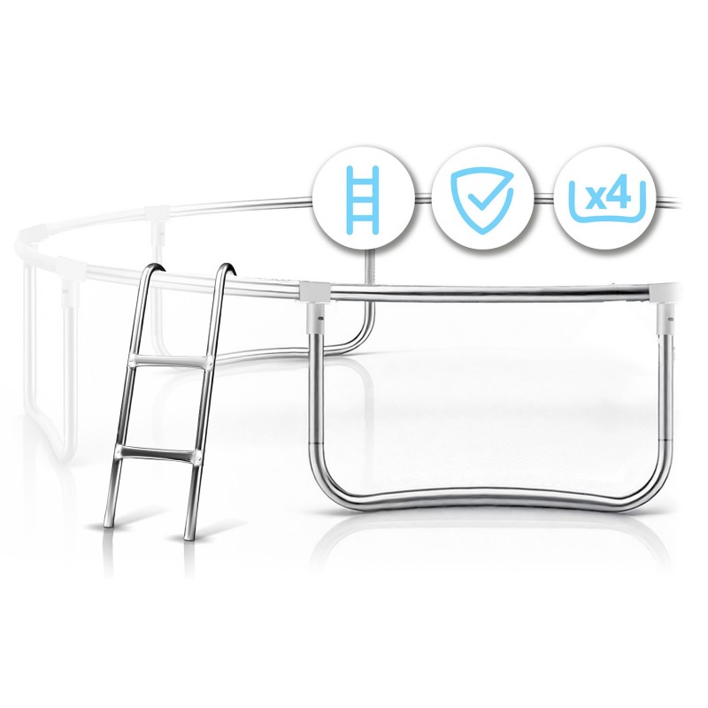 Стабільність, безпека та зручний вхід• Драбина з кріпленням - міцна, металева та з відповідним нахилом. Вона сприяє безпечному входу та виходу, особливо для дітей. Завдяки продуманому куту нахилу, вона забезпечує зручний доступ до батута висотою до 100 см.