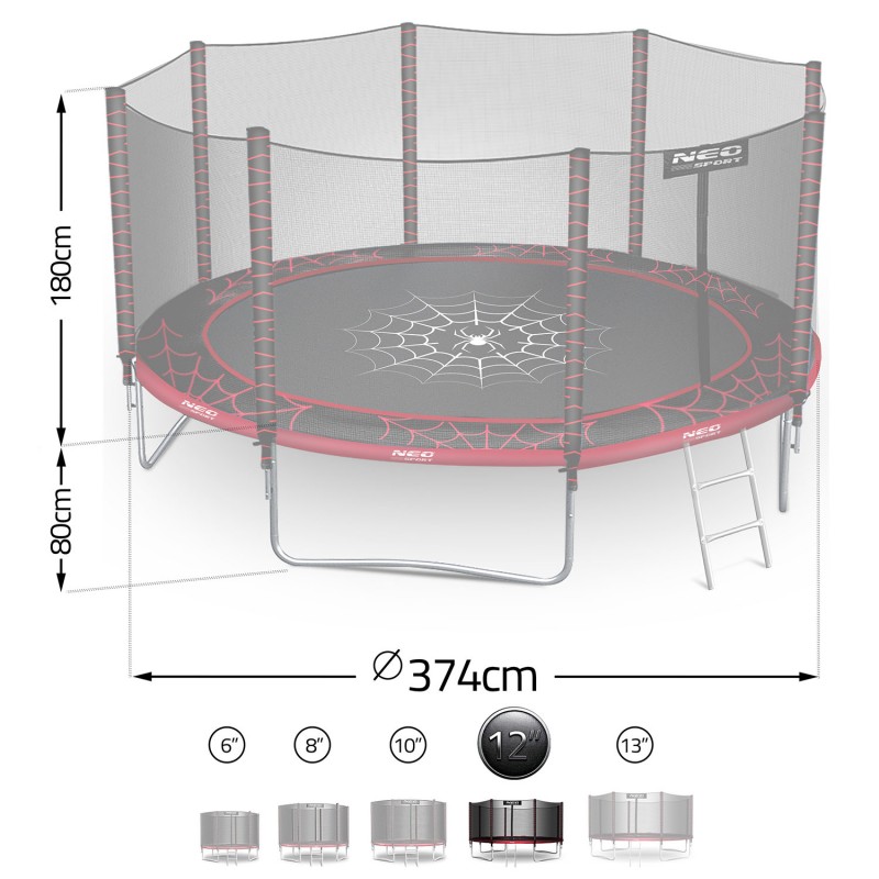 Довговічність - стійкий до сонця та дощу, зберігає свої властивості протягом багатьох років, гарантуючи комфорт та безпеку.Великий простір, велика розвага!Батут NEO SPORT з вражаючим діаметром 37 см забезпечує багато місця для стрибків — ідеально підходить для дітей та дорослих!