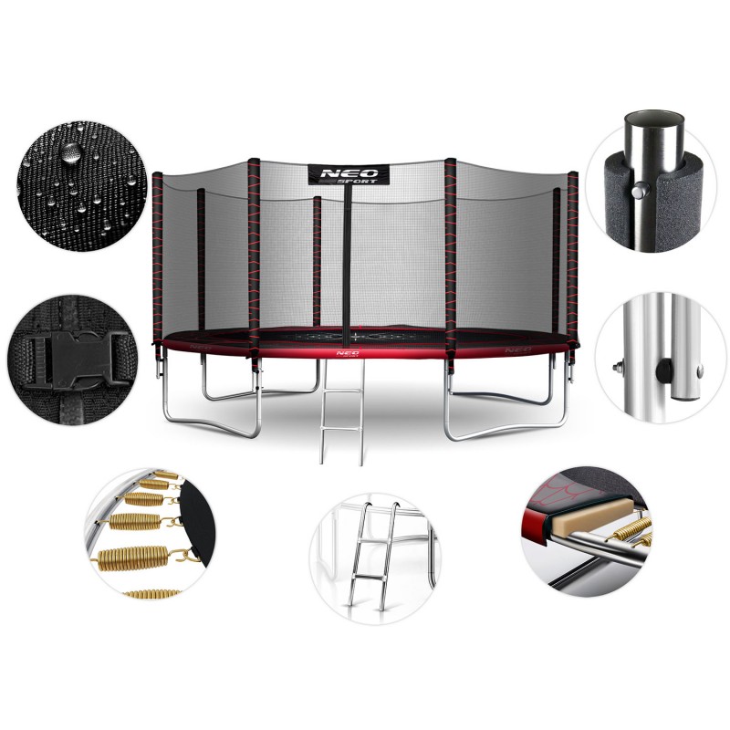 Преміальна якість. Ідеальний вибір для тих, хто шукає батут із справді міцною основою!Каркас батута NEO SPORT виготовлений з високоякісних сталевих труб, стійких до корозії, ультрафіолетового випромінювання та інтенсивного використання.