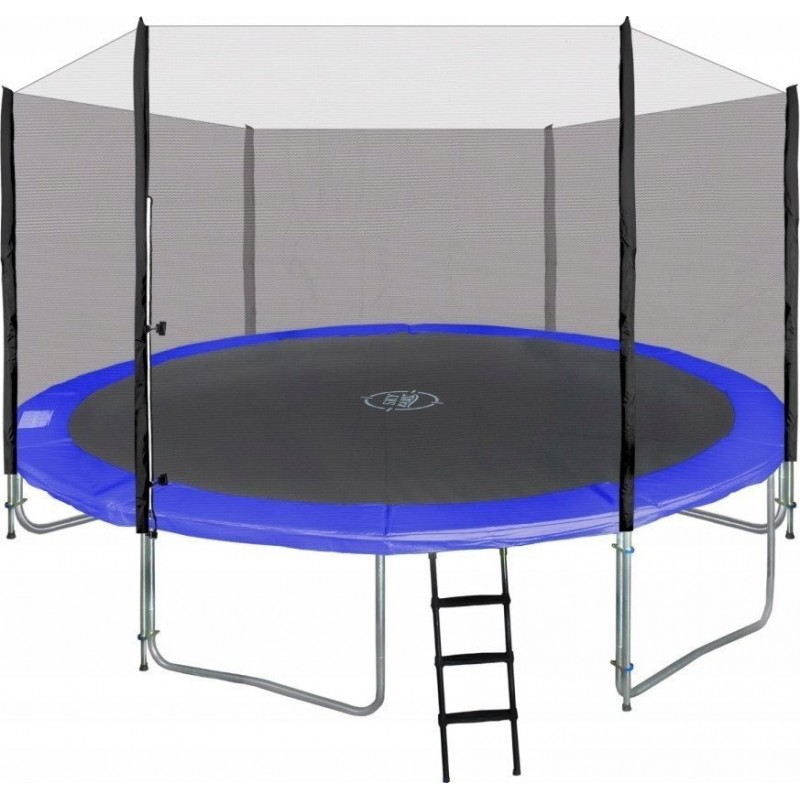 Захисна сітка, натягнута на 12 стійок, забезпечує безпеку і стійкість конструкції, а самі стійк додатково покриті захисною губкою EPE, перерізом приблизно 48 х 10 мм, що мінімізує ризик травм. Батут також оснащений чорною драбиною з порошковим покриттям, яка полегшує підйом на килимок для стрибків. У набір також входять 24 засувок з кришкою для кріплення стійок та набір інструментів для складання всієї конструкції.Захисна сітка під час стрибківЗовнішня захисна сітка для батута виготовлена з міцного поліетиленового матеріалу вагою приблизно 95 г/м², що забезпечує високу стійкість до зовнішніх факторів, включаючи погодні та механічні умови. Сітка відповідає всім стандартам безпеки і може використовуватися практично в будь-яких умовах. Сітка має 12 стійок, а захисний матеріал для них виготовлений з міцного ПВХ. Захисна сітка має двосторонню кольорову блискавку для кращої видимості. Крім того, гачки дозволяють швидко і надійно закріпити сітку на ободі батута.