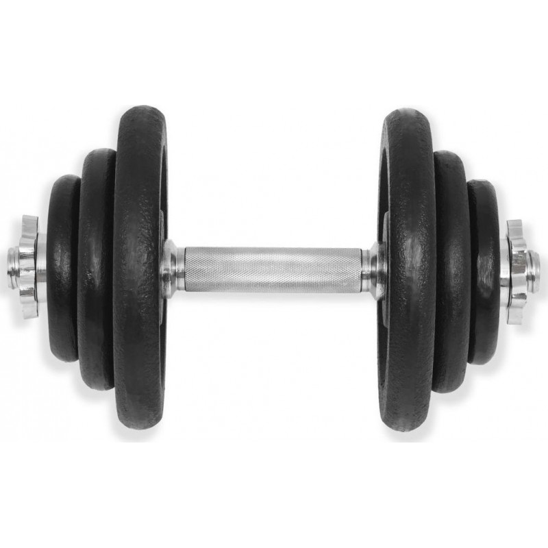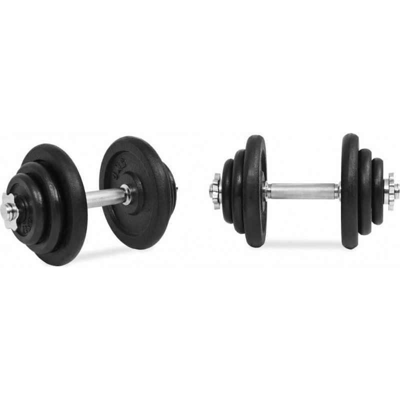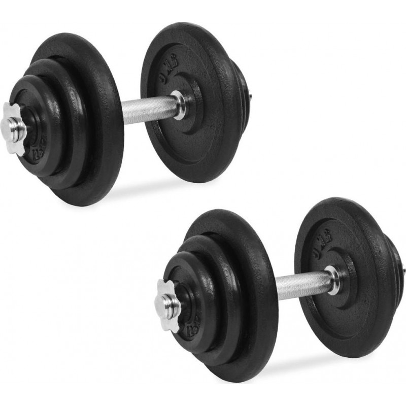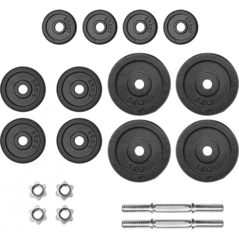 Цей універсальний набір гантелей ідеально підходить для тренування м'язів грудей, біцепсів, плечей, трицепсів і спини. Він складається з чотирьох сталевих прутів по 5 кг, чотирьох по 2,5 кг, чотирьох по 1,25 кг і двох по 2,25 кг, а загальна вага приблизно 40 кг. Цей набір дозволяє користувачам вибрати навантаження, що підходить для різноманітних вправ.