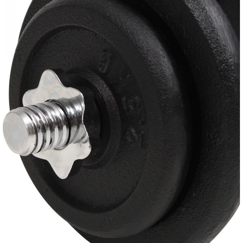 Ваги виготовлені з чавуну та покриті лаком. За допомогою фланцевих гайок зі шпиндельним замком їх можна легко встановити на штанги. Вага чітко вказана на кожній табличці для швидкої та легкої ідентифікації.