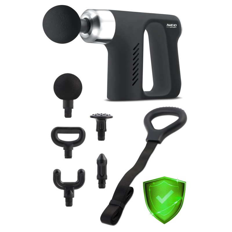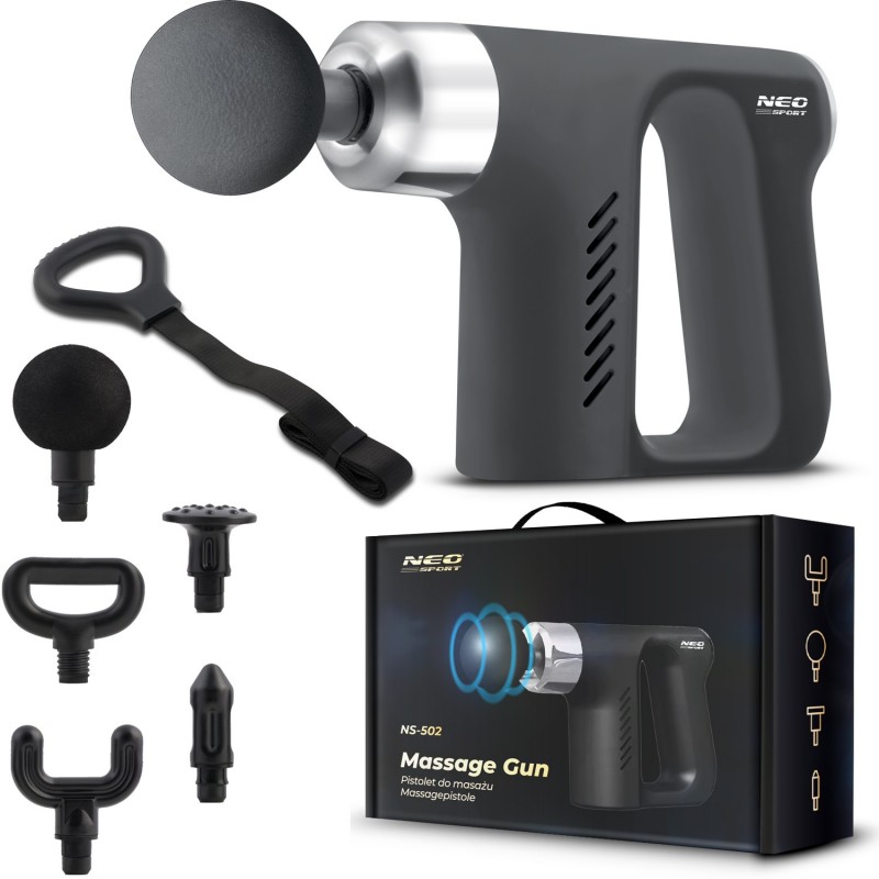 Зручний і функціональний масажний пістолет для тіла + 5 накладок NS-502 чорний