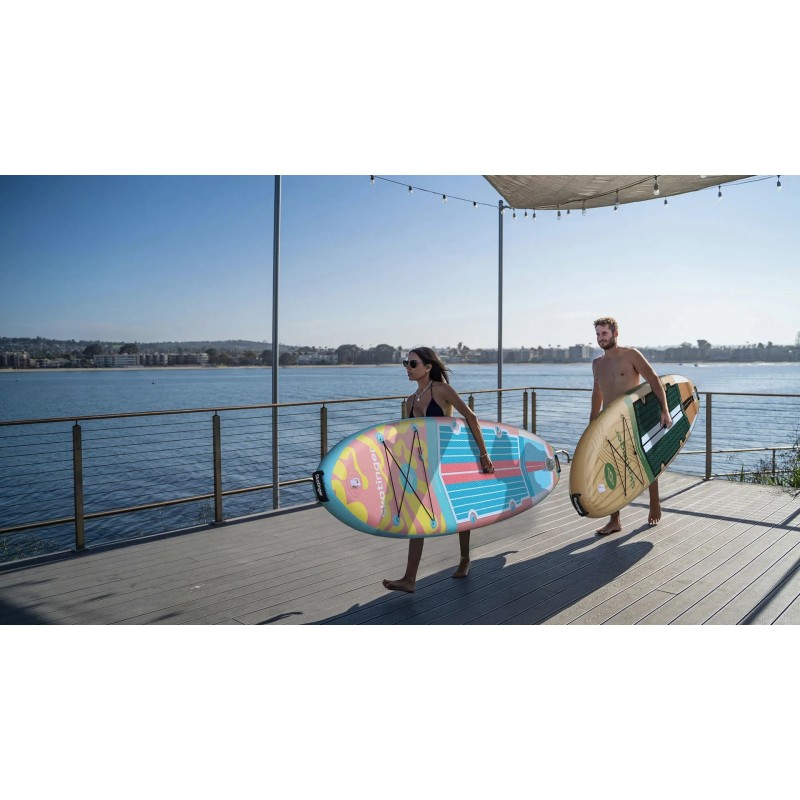 Комплектація: SUP-дошка, рюкзак, насос (подвійної дії), плавники, страхувальний ремінь (ліш), ремонтний комплект, плечовий ремінь, водонепроникна сумка для телефону, алюмінієве весло, інструкція користувача.