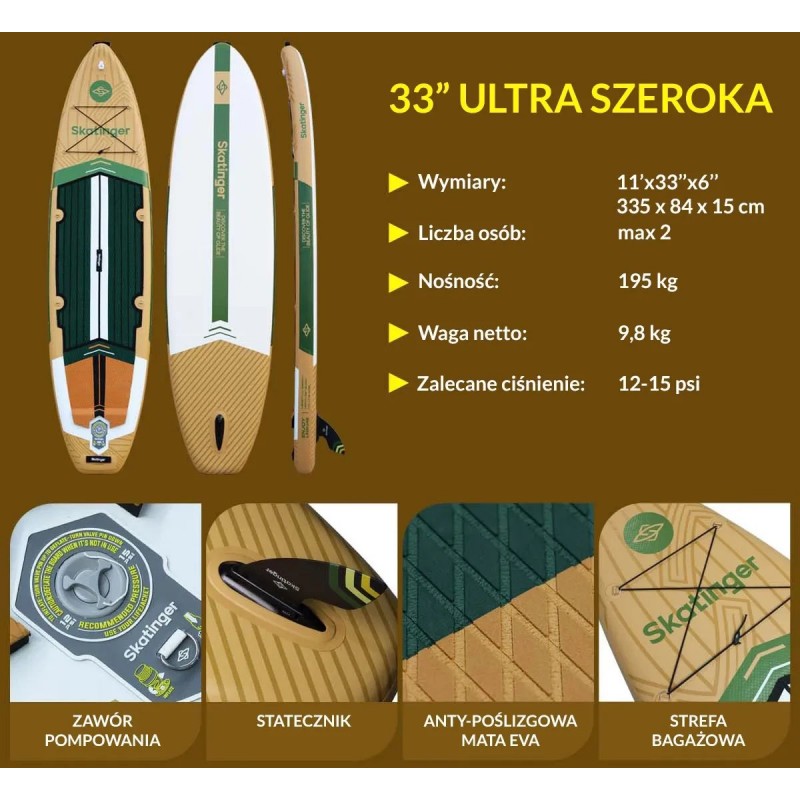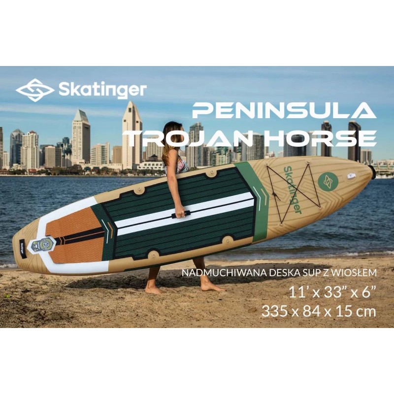 Дошка SUP SKATINGER Peninsula Trojan Horse – ідеальний вибір для любителів водних пригод, які цінують стабільність та комфорт під час плавання.Її вражаючі розміри: 335 см у довжину, 84 см у ширину та 15 см у товщину роблять плавання справжнім задоволенням як для початківців, так і для більш досвідчених користувачів. Незалежно від того, чи мрієте ви про тихий день біля озера, чи хочете шалено поплавати на хвилях, ця дошка обов'язково виправдає ваші очікування.Обираючи SUP SKATINGER Peninsula Trojan Horse, ви отримуєте не тільки чудову якість, але й легкість та зручність транспортування.Її аеродинамічна форма дозволяє легко долати великі відстані, а просторий дизайн дозволяє плавати з друзями чи родиною. Приготуйтеся до незабутніх моментів на воді! Ось що робить цю дошку унікальною: