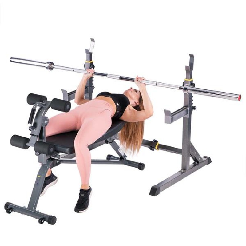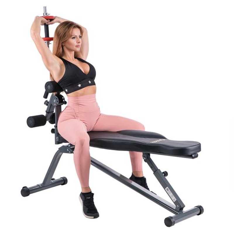 L8022 HMS Premium - багатофункціональна лава. Вона стане в нагоді для тренувань з гантелями або штангою. Комфорт і зручність Лава має спеціально профільовану ергономічну спинку, яка безпосередньо впливає на комфорт і зручність під час тренування. Однак, в першу чергу, вона стабілізує правильне положення користувача. Тверда дошка забезпечує стабільність спинки, а м'яка губка - комфорт і зручність під час тренування. Товщина губки дуже важлива, оскільки вона має прямий вплив на ідеальне положення тіла. Сучасна карбонова оббивка стійка до вологи та поту і запобігає ковзанню тіла під час тренування. Вона також дуже приємна на дотик. Лава 2 в 1 Лава пропонує безліч варіантів тренувань. Завдяки своїй конструкції вона чудово поєднується зі стійкою, а також чудово підходить для тренувань з гантелями. Конструкція лавки дозволяє опустити спинку по діагоналі для виконання присідань. Тримач для ніг гарантує комфорт і безпеку при виконанні цієї вправи, задіюючи м'язи черевного преса. Додаткове обладнання Модель L8022 оснащена двома стрічками опору, які урізноманітнюють тренування і стануть цікавим доповненням до вправ зі штангою або гантелями. Багато можливостей регулювання Лава має регульований кут нахилу спинки, а також регульовану висоту і кут нахилу підставки для ніг. Така широка маневреність положення лави дозволяє вільно підлаштувати її під конкретний Висота і під конкретну вправу. Стильний дизайн Лавка зручна та функціональна, але водночас стильна. Поєднання чорного карбонового матеріалу з жовтими вишитими елементами дає чудовий візуальний ефект, характерний для бренду HMS Premium. L8022 HMS Premium просто необхідна в кожному домашньому тренажерному залі. Специфікація: Матеріал: сталь, пінопласт, дерево, ПВХ Розміри: Довжина: 140 см Ширина: 44,5 см Висота: 88 - 100 см Спинка: Довжина: 107 см Ширина: 38 см Товщина: 5 см, макс. 7 см Регулювання: Спинка: 5 рівнів Нахил підставки для ніг: 4 рівні Висота підставки для ніг: 3 рівні Довжина підставки для ніг: 3 рівні Дві стрічки опору в комплекті Максимальне навантаження (з користувачем) 270 кг Вага виробу: 14 кг Примітки: Не призначений для комерційного використання Гарантія 24 місяці