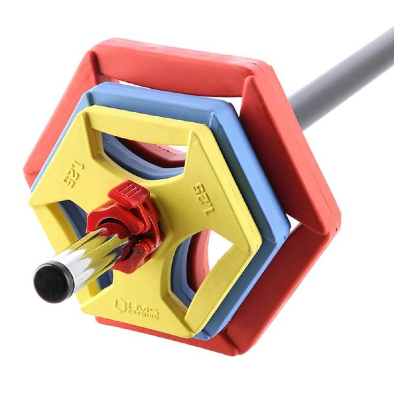 SBP21 HMS - це штанга, присвячена фітнесу. Тренування такого типу дозволяють не тільки спалювати непотрібний жир, але й зміцнювати та формувати м'язи. Комплект складається з грифа, 6 кольорових накладок, покритих гумовим покриттям, і двох клем. Довжина грифа становить 140 см, а його діаметр - 30 мм. Виготовлений з міцної хромованої сталі, з підвищеною зносостійкістю. Великою перевагою системи є легкість зміни навантаження. Колір пластин залежить від їх маси. Їх шестигранна форма запобігає скочуванню штанги. Вага вантажу змінюється в залежності від ступеня тренованості, сили і форми спортсмена. SBP21 необмежені можливості! Тренувальна штанга присвячена всім, хто хоче підвищити силову витривалість м'язів, спалити жир і виліпити рельєфний силует. Великою особливістю і перевагою набору є легкість зміни навантаження і можливість посилення багатьох груп м'язів. Специфікація: До складу набору входять: Хромована штанга з гумовим покриттям 2 пружинні комірці 2 пластини - 5 кг 2 пластини - 2,25 кг 2 пластини - 1,25 кг Розміри штанги: Довжина: 140 см Діаметр: 35 мм Вага: 2 кг Вага та кольори пластин: 5 кг - помаранчевий 2,25 кг - синій 1,25 кг - жовтий Матеріал: хромована сталь і гума Вага виробу: 20 кг (+/- 500 г) Примітки: гарантія 24 місяці