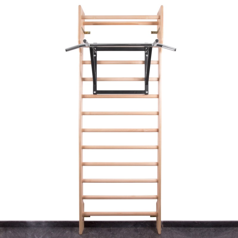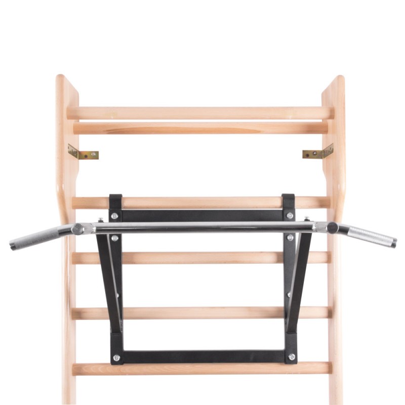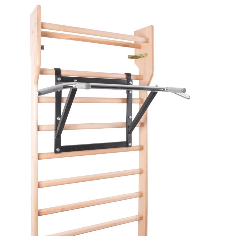 Турнік може бути встановлений на стіні або прикріплений до стіни. Виготовлений з високоякісної хромованої сталі зі стійкою поверхнею.