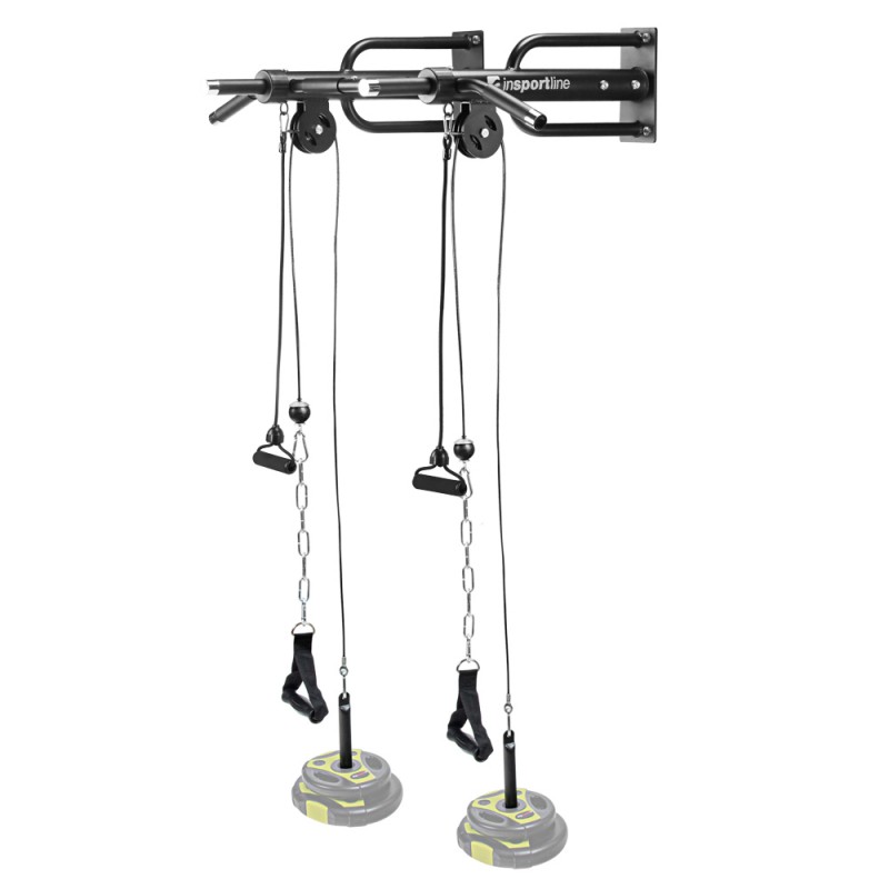 Турнік настінний з підйомниками inSPORTline RK180 - це повноцінна блок-система для вашого дому! Турнік для підтягування з 3 парами захватів також має два шківи, що дозволяють тренуватися з гирями, які кріпляться до шківів за допомогою перехідників, на яких ставлять гирі. Головною перевагою цієї системи є можливість використання як звичайних, так і олімпійських гирі - діаметр адаптера можна змінювати від 25 до 50 мм. Прикріплена до стіни 4-ма суцільними шурупами, тяга має вантажність до 150 кг.