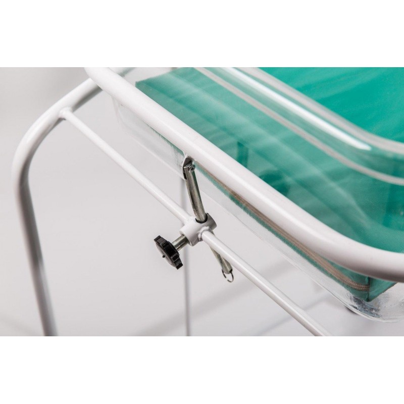 Ліжечко медичне для новонародженого з регулюванням нахилу призначене для комфортного та безпечного розміщення малюка під час сну. Використовується у перинатальних центрах, пологових будинках, клініках (неонатологічних відділеннях) та інших медичних закладах. Переваги:. Безпечні матеріали – металевий каркас із полімерним покриттям та ванночка з ударостійкого органічного скла.. Зручне регулювання – можливість змінювати кут нахилу ванночки від 0° до 10° для комфорту малюка.. Мобільність – колісні опори діаметром 75 мм для легкого переміщення, два колеса оснащені гальмівним механізмом.. Гігієнічність – захисно-декоративне антибактеріальне покриття каркасу (білий RAL 9003) дозволяє легко очищати та дезінфікувати поверхні.. Власне виробництво – контроль якості на всіх етапах, відповідність медичним стандартам. Характеристики: Габарити ліжечка: 822×512×920 мм Габарити ванночки: 708×458×209 мм Висота від підлоги до спального місця: 713 мм Максимальне навантаження на ванночку: 10 кг Маса виробу: 6,4 кг Матрац у комплекті (600×350 мм) Комплектація:. Металевий каркас (1 шт.). Ванночка з органічного скла (1 шт.). Матрац (1 шт.). Паспорт виробу (1 шт.)