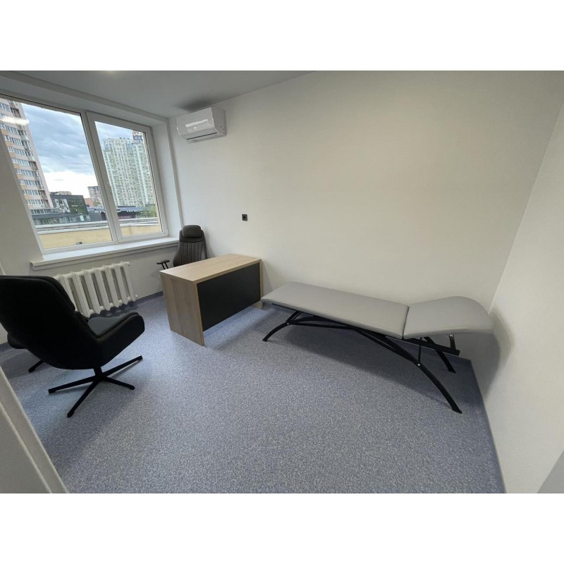 Кушетка медична оглядова Атон "Грація" призначена для розміщення пацієнтів при проведенні медичних процедур та забезпечення їх максимального комфорту. Конструкція медичної кушетки "Грація" включає в себе міцний розбірний каркас, підголовник і сидіння. М'які частини кушетки виготовлені з фанери і поролону і оббиті високоміцним медичним шкірзамінником польського виробництва. Переваги кушетки "Грація": Естетичний дизайн підвищує привабливість медустанови і настрій пацієнтів і персоналу; Можлива комплектація держателем одноразових простирадлом і штативом для внутрішніх вливань; Антибактеріальні матеріали, які захищають пацієнтів від інфекцій в проміжках між санітарною обробкою; Підголівник має механізм підйому (ростомат), який дозволяє встановлювати його з нахилом в діапазоні від 0° до 45°. Вартість вказана за кушетку без додаткових опцій. Стандартні кольори оббивки: синій, бежевий, салатовий, сірий, блакитний. Також можливий вибір іншого кольору оббивки на замовлення (у вашому корпоративному стилі або за власними уподобаннями). Просимо звернути увагу: колір шкірзаму Scaden може відрізнятися в залежності від освітлення та налаштувань Вашого екрану.