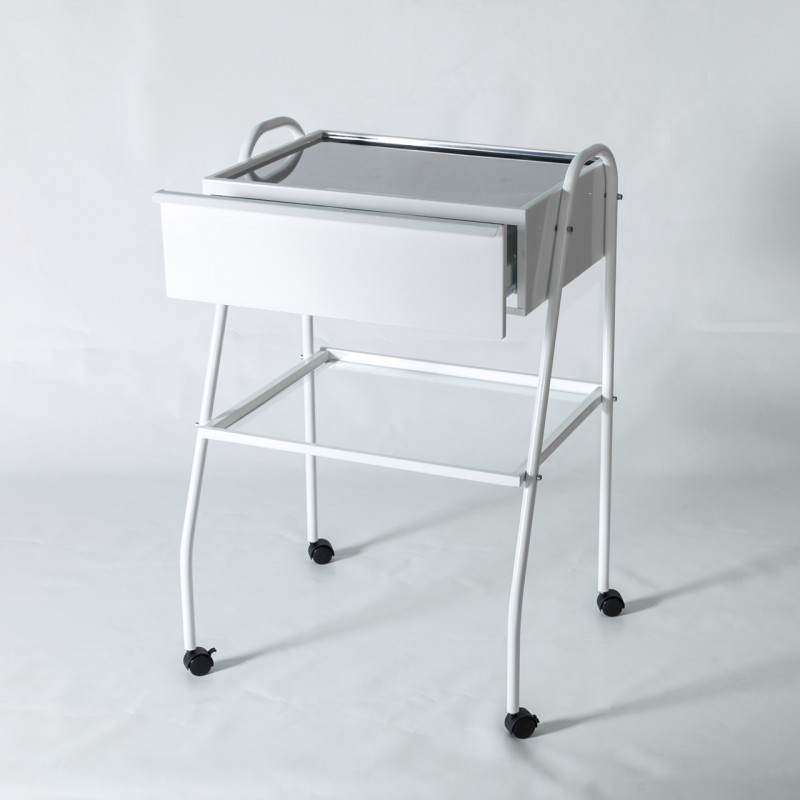 Столик маніпуляційний медичний Атон СТ-М-Е-НС призначений для розміщення витратних матеріалів, медикаментів та інструментів. У верхній частині металевого каркаса з полімерним покриттям, встановленого на коліщатка з гальмами, розташовується ящик. Верхня полиця виготовлена з нержавіючої сталі. У нижній частині каркаса розташована скляна полиця. Верхня частина каркаса одночасно виконує функції ручок переміщення столика. Матеріал каркаса сталь з полімерним покриттям з антибактеріальними властивостями Матеріал полок нержавіюча сталь / скло Габаритні розміри 530х622х930 мм