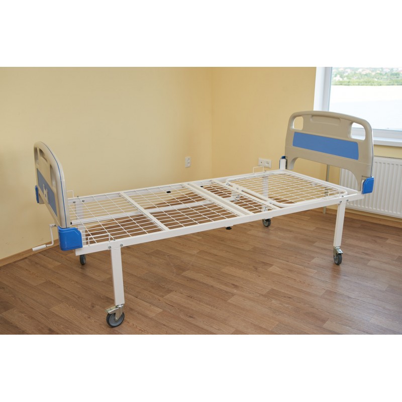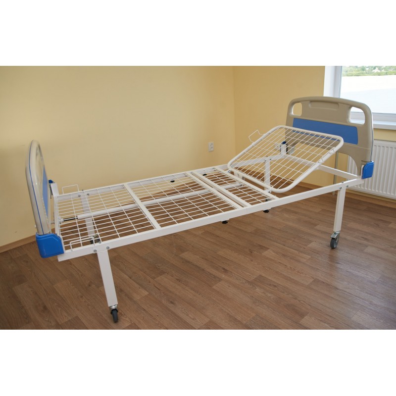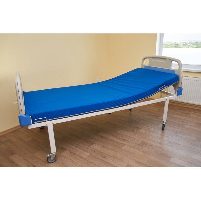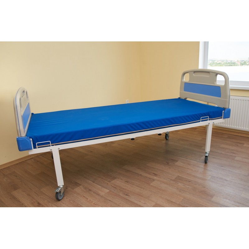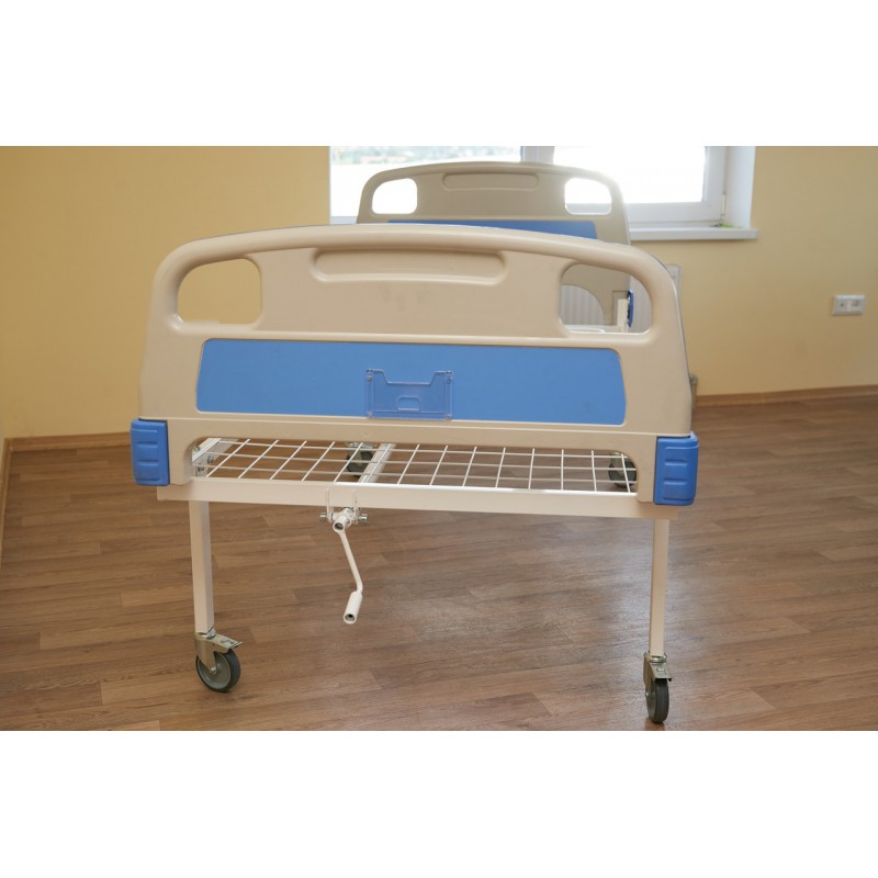 Ліжко медичне функціональне Атон КФ-2-МП-БП-К125 з пластиковими бильцями і колесами 125 мм призначена для лежачих хворих, які тимчасово обмежені в русі і потребують особливого догляду. Регулювання кута нахилу виробляється з допомогою обертання важеля регулювання. Відбувається це плавно і без зусиль, впорається навіть тендітна дівчина. При необхідності важіль регулювання можна сховати. Конструкція медичної ліжка виконана з сталевих труб, забарвлених порошковою фарбою з антибактеріальними властивостями. Каркас покритий спеціальною полімерною антибактеріальної фарбою з додаванням срібла. Це забезпечує додатковий захист від розповсюдження лікарняних інфекцій і знижує частоту санітарних обробок. Покриття стійке до дезінфекції і витримує агресивні чистячі засоби. Передбачена можливість безступінчатого регулювання кутів нахилу секцій заснування шляхом обертання відповідної ручки. Ліжко встановлена на колеса діаметром 125 мм. Можлива додаткова комплектація поперечиною, еластичним матрацом, штативом і телескопічними бічними огорожами. Переваги: перешкоджає поширенню внутрішньолікарняних інфекцій; легка збірка; три модифікації билец; фіксатор матраца; колеса з фіксатором; посилений каркас; можлива комплектація бічними огорожами та/або штативом, та/або медичним матрацом; гарантія 18 місяців. Характеристики розмір: 2050х900х880 мм; каркас: сталь з антибактеріальним порошковим покриттям; навантаження: до 180 кг. Термін служби (не менше) - 5 років.
