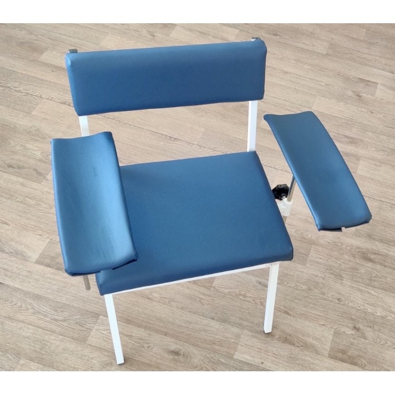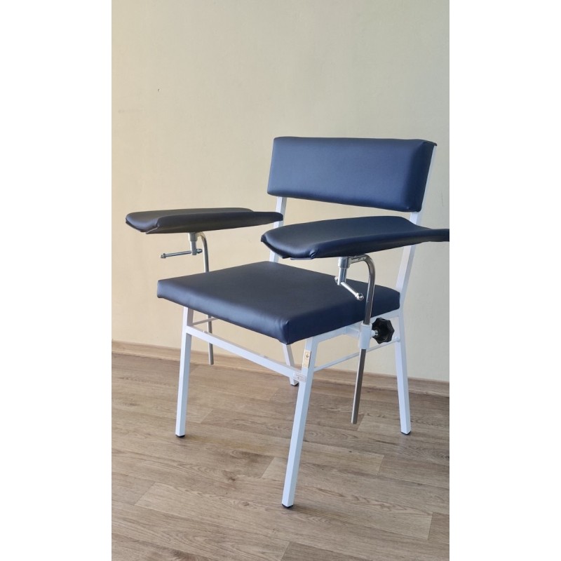 Стілець донорський Атон СД-01 (стілець донора) використовується в медичних закладах для розміщення пацієнтів під час проведення процедур забору крові та інфузійної терапії. Крісло для забору крові з двома підлокітниками являє собою суцільнозварний каркас, виконаний з профільної труби. Підлокітники (2 шт.) регулюються по висоті. До каркаса кріпляться сидіння і спинка, оббиті вінілштучноюшкірою з поролоном товщиною 40 мм. Стандартні кольори оббивки: синій, бежевий, салатовий, сірий, блакитний. Також можливий вибір іншого кольору оббивки на замовлення (у вашому корпоративному стилі або за власними уподобаннями). Просимо звернути увагу: колір шкірзаму Scaden може відрізнятися в залежності від освітлення та налаштувань Вашого екрану.