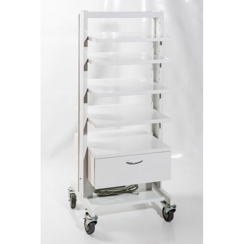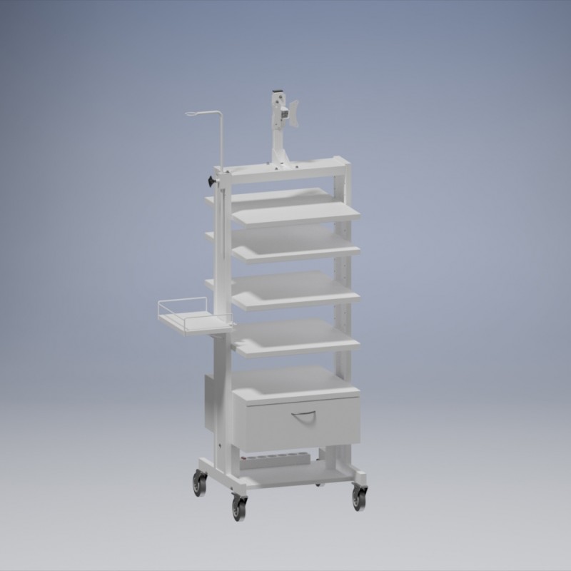 Стійка ендоскопічна медична Атон СТ-ЕЯ-М-Кр-Пб призначена для розміщення на ній приладів, обладнання та витратних матеріалів. Стійка СТ-ЕЯ-М-Кр-Пб для медичних приладів складається з: розбірного металевого каркаса з полімерним покриттям, встановленого на чотири колісні опори з гальмами; бічної полиці розміром 215х320 мм; кронштейна для ендоскопа, виготовленого з нержавіючої сталі; кронштейна під монітор ендоскопу У нижній частині каркаса розташовується ящик, над яким розташовані шість металевих полиць. Відстань між полицями можна змінювати з кроком 50 мм. Стійка медична комплектується мережевим фільтром.
