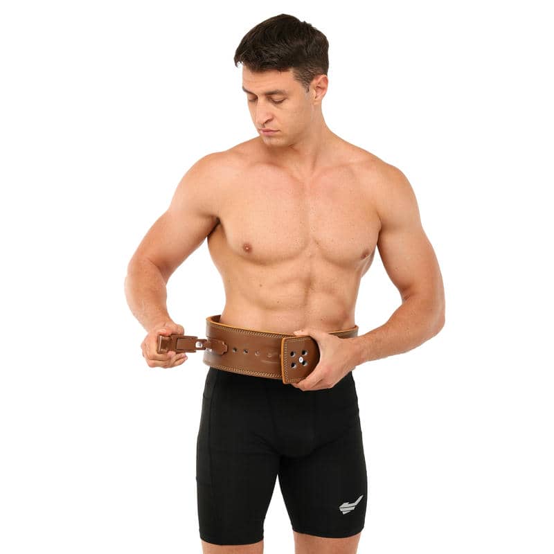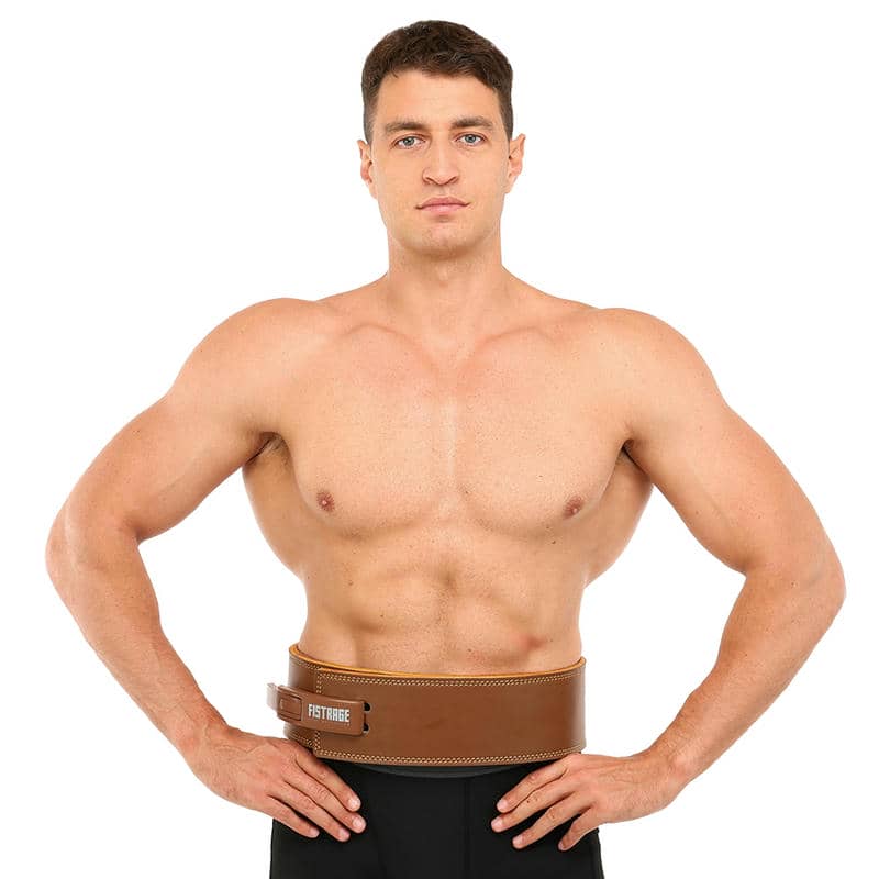 Пояс для пауерліфтингу з шкіряним карабіном Fistrage M, ширина-15см, коричневий, код: VL-4395_MBR